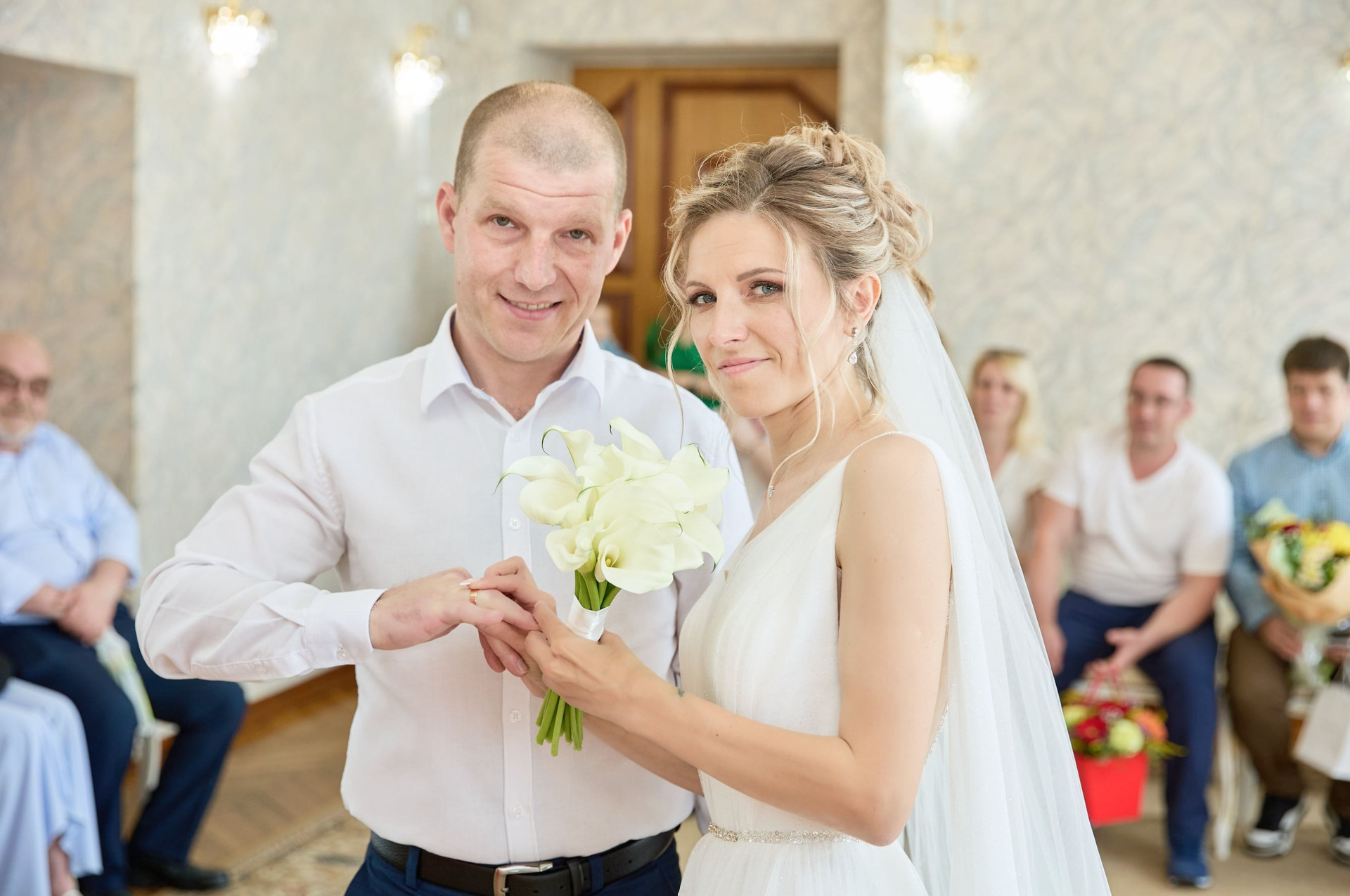 Свадебная фотосессия в ЗАГСе в городе Одинцово. Прогулка жениха и невесты в парке Малевича
